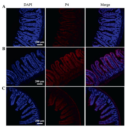 For the histological investigation of the jejunum segments, confocal laser scanning microscopy (CLSM) was done to detect the P4 signals which were used to indicate the internalization of intact micelles in enterocytes. The results revealed the presence of P4 signals on the outer surfaces of the intestinal microvilli (AP side) with intact micelles permeating to the basolateral (BL) side representing that a fraction of integral micelles were taken up by enterocytes for all formulations (Fig. 3). Strong fluorescence signals of P4/DAPI for TPGS micelles than other groups of micelles confirmed higher uptake of TPGS micelles than Taxol® and PEG-PDLLA micelles being coincident with the results from in situ perfusion. The fluorescence intensity of the PEG-PDLLA micelles was higher than Taxol®.