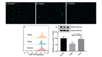 | Fig. 4. The changes of NO-eNOS. Endothelial monolayer was incubated with cell culture medium (control), 64 μg/mL TiNFs or TiNTs for 24 h. The intracellular NO and nuclei were stained with green fluorescence by DAF-FM and blue fluorescence by Hoechst 33342, respectively. (A-C) The representative fluorescence images of control (A), TiNF- (B) and TiNT-exposed (C) exposed cells. (D) The changes of DAF-FM intensity. (E) The protein levels of eNOS were measured by Western blot. *P < 0.05, compared with control. | |
