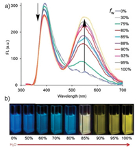 The unique property of aggregation-induced emission (AIE) offers a new mechanism for fluorophore design [19]. Generally, AIE fluorophores are non- or weakly fluorescent in good solvents, but they emit a strong fluorescence upon aggregation in poor solvents. In most cases, the obtained AIE entities are usually attributed to the intrinsic hydrophobic effect of the constituent monomer in water [20]. Therefore, a more strongly hydrophobic effect is expected in the aggregate state. However, researchers have focused on the unique photophysical property of AIE, while neglecting to investigate and exploit the hydrophobic effect in the AIE system. Herein, we studied the hydrophobic effect and identified that the AIE-triggered tunable hydrophobic effect can be utilized to systematically study the hydrophobic properties of chaotropic anions in the Hofmeister series for the first time.