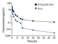 | Fig. 5. Time-concentration curves of PTX after intravenous injection with free PTX and PTX@EW NPs. | |