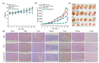 The anticancer activity of PTX@EW NPs was further investigated in vivo. Mice were subcutaneously inoculated with CT26.WT cells, and then were administrated with the different formulations every 2 days. As shown in Fig. 7a, mice treated with the PTX@EW NPs suffered almost no serious weight loss, further suggesting the reduced side effects of the EW NPs. Blood compatibility was verified by hemolysis assay. The results (Fig. S1) indicated that the hemolysis rate was slightly positively correlated with the NP concentration, but was generally maintained lower than the permissible level of 5% across all the tested concentrations, demonstrating the good hemocompatibility of EW NPs. The variation of tumors volume had been compared in Fig. 7b. Mice were sacrificed at last, and the tumors and other organs were excised for photographic and pathological analyses Fig. 7c. Obviously smaller tumors was observed in PTX@EW NPs groups. Compared to PBS and blank EW NPs groups, the PTX@EW NPs groups exhibited obvious anticancer effect, which was consistent with the results of fluorescence imaging in vivo. This significant inhibitive effect to tumor growth was reached maybe due to improved targeting effect, which could effectively increase the safe dosage of PTX. As shown in Fig. 7d, there were no visible pathological abnormalities in HE slices of main organs in PTX@EW NPs groups, while obvious cell shrinkage and absence could be read in tumors slices. These pathological differences were consistent with the results of the antitumor evaluation in vivo above. All these results demonstrated the good biosafety and antitumor efficacy of the PTX@EW NPs.