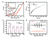 | Fig. 4. Mechanistic analysis of the enhanced photocatalytic performance of C, N-TiO2-1. (A) Band gap energy of C, N-TiO2-1 and P25 and the corresponding UV–vis diffuse reflectance spectra (insert). (B) Electrochemical impedance spectroscopy (EIS) Nyquist plots showing similar impedance values of C, N-TiO2-1 and P25. (C) Transient current response of C, N-TiO2-1 and P25 membrane electrodes with light on and off cycles showing higher transient photocurrent of C, N-TiO2-1 than that of P25. (D) EPR spectra of C, N-TiO2-1 and P25 under visible light irradiation showing a much higher OH generation by C, N-TiO2-1 than that of P25. | |