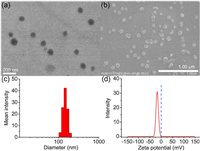 | Fig. 1. Typical (a) TEM and (b) SEM images of HA-ADA/TEPA-CD polysaccharide nanoassembly. (c) DLS and (d) zeta potential results of polysaccharide nanoassembly in deionized aqueous solution. | |