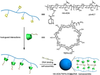 Genetic engineering is a process of introducing nucleic acids to modulate specific protein expression, which has fueled tremendous interest in the biomedical fields [1, 2]. To date, although some non-viral gene delivery systems based on polymer nanoparticles, dendrimers, mesoporous silica nanoparticles, liposomes, and core-shell nanoparticles have presented promising alternatives to viral vehicles [3-10], there still exist several challenges in constructing these systems, such as complicated synthetic procedure, poor aqueous solubility, high toxicity, lack of specificity, and insufficient gene release [11-15]. Therefore, far more efficient gene vehicles are still in imperative demand. In this regard, supramolecular chemistry exhibits great potential [16-21]. Among the representative macrocyclic molecules, such as cyclodextrins (CDs), are a popular class of biocompatible artificial receptors with a hydrophilic external periphery and a well-defined hydrophobic hollow cavity that can selectively bind a variety of guest species [22-29]. On the other hand, hyaluronic acid (HA), a sort of water-soluble biocompatible and biodegradable polysaccharide with specific recognition ability toward cancer cells, which could be used as the targeting agent and building block for the construction of targeted drug/gene delivery system [30-34]. Previously, we developed a pH-responsive and targeted polysaccharide conjugate based on the boronate linkage of gluconamide-grafted HA with anticancer drug bortezomib, which could exhibit targeted drug release behaviors at acidic pH and possess lower cytotoxicity and a higher inhibition effect toward cancer cells [35]. Chen et al. reported a platform for siRNA delivery by ZnⅡ−dipicolylamine complexes functionalized HA nanoconjugate, which has a high affinity for siRNA and targeted delivery it into cancer cells, demonstrating a safe and efficient vector for targeted gene therapy [36].