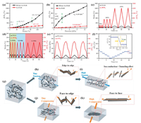 The underlying mechanism of the discrepancy in sensitivity for the two kinds of hydrogels is closely correlated with the high aspect ratio structure and excellent electrical conductivity in MXene. The conductivity of hydrogel is mainly attributed to the localized directional conduction of ions in the aqueous solutions and electron transport of conductive nanoparticles [40]. Figs. 3g-k depicts the stacking status of the MXene to simulate the evolution of conductive network in the hydrogels under tension. In the initial static state without external force (Fig. 3g), the MXene nanosheets in the hydrogel matrix are randomly distributed, and a face-to-edge connection between adjacent nanosheets forms a 3D conductive network. When a tiny tensile force is applied, the connection of the nanosheets converts into edge-to-edge (Fig. 3h). With adequate electron conductive path and decreased contact area, an inferior GF is obtained. After the hydrogel is further stretched, partial conductive joints of MXene nanosheets break and the tunneling effect from the incorporated conductive nanoparticles dominate the electron conductive path (Fig. 3i), revealing more distinct variation in resistance with mild tensile force. With further increment in tension, the tunneling effect of adjacent MXene nanosheets cut off along with expanded spacings, resulting in sharp increase in resistance, and the GF manifests itself with the highest 18.15. In contrast, the SA-PAM displays apparent sluggishness to strains, which is attributed to the constantly maintained ion conduction to external force in the hydrogel. A similar phenomenon related to facial/marginal distribution has been reported [41, 42].