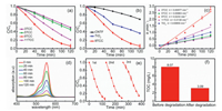 | Fig. 2. Degradation of RhB by (a) TCC with different layers of TiO2 and (b) CNTF, TiO2, 9TCC. (c) First-order plots for the photo-degradation of RhB and (d) liquid phase UV spectrum of 9TCC. (e) Cycling test of 9TCC; (f) TOC of 9TCC before and after the photo-degradation test. | |