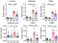 | Fig. 3. The effect of chronic GW501516 treatment on BCAAs catabolism in db/db mice. *P < 0.05. ***P < 0.001. ****P < 0.0001. 3-HIV, 3-hydroxyisovaleric acid. 3-HIB, 3-hydroxyisobutyric acid. CC, db/m+ control; CP, db/m+ treated with GW501516; OC, db/db control; OP, db/db treated with GW501516. Results are means±SEM, n=9. | |