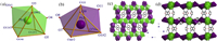 | Fig. 2. (a, b) Distorted bicapped triangular prismatic coordination geometry of Pb1 (green) and Pb2 (purple), (c) 2D plane being parallel to ac-plane, (d) 3D Hofmann-type networks constructed by 2D layers with FDA2− ligands viewed along c-axis in 2. | |