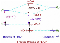| Fig. 4. Schematic illustration of the energy levels of the frontier orbitals in Pb2+ ion, FDA2− ligand and Pb-CP. | |