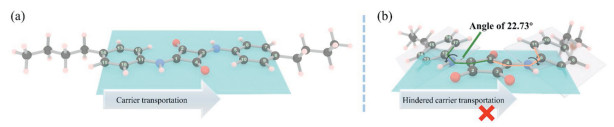 We first survey the divergences in the carrier density N. Pristine SA-Bu and CA-Bu are provided with optical gap of 2.76 eV and 1.89 eV estimated from its UV–vis spectrum (Fig. S10 in Supporting information). The HOMO-LUMO energy levels are obtained through calculations and spatial plots of the molecular orbitals are presented in Fig. S11 (Supporting information). The figure shows that the distribution density of SA-Bu and CA-Bu are similar. The calculated HOMO-LUMO gaps are 2.20 eV and 1.57 eV for SA-Bu and CA-Bu, respectively, which is of similar trend to the UV–vis result. In this term, CA-Bu ought to have lower band gaps and in consequence higher intrinsic carrier densityN under the same thermal condition [38-40], which cannot explain the poorer conductivity of CA-Bu.