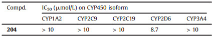 Table 4 CYP450 inhibition potency of 204. |