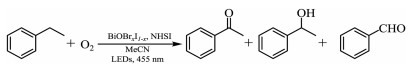 Inspired by the above investigations, we intended to engineer solid solution to achieve selective benzylic C-H bond activation through regulating specific reactive oxygen species production involved by succinimide-N-oxyl radicals (SINO). Herein, the BiOBrxI1-x solid solutions with adjustable band structure and redox potentials were used to study their photocatalytic performance for aerobic oxidation of C(sp3)-H bonds to corresponding oxygenated products at room temperature with the assistance of N-hydroxysuccinimide (NHSI). The possible mechanism of synergistic effect of enhanced carrier separation and singlet oxygen production by solid solution toward improved photocatalytic performance was revealed.