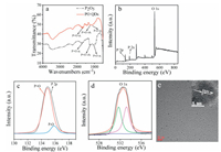 | Fig. 1. (a) Solid-state FTIR spectra of PO QDs (red line) and P2O5 powder (black dash dot line). XPS full scan spectrum (b), high resolution XPS spectra of P 2p (c) and O 1s (d) of PO QDs. (e) Wide-field TEM image of PO QDs, the insert represents the corresponding HRTEM. | |