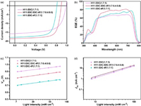 | Fig. 2. (a) J-V curves. (b) EQE curves of the binary and the optimized ternary ASM-OSCs. (c) VOC dependence on light intensity of the binary and the optimized ternary ASM-OSCs. (d) JSC dependence on light intensity of the binary and the optimized ternary ASM-OSCs. | |