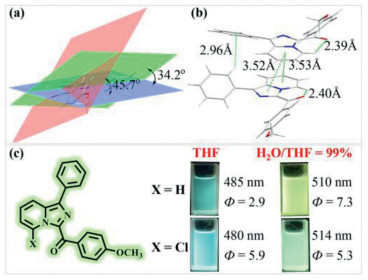 | Fig. 2. (a, b) Crystal structures and packing patterns of c3. (c) Control experiment to illustrate the effect of the intramolecular hydrogen bond. | |