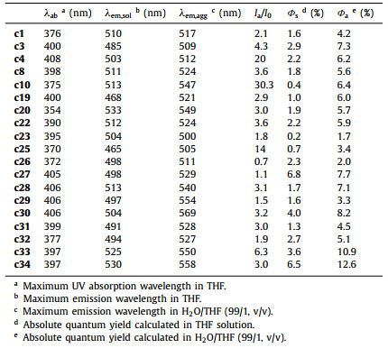 Table 1 The optical properties of selected compounds. |