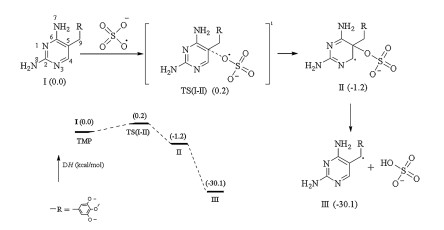| Fig. 3. The calculated enthalpy profiles (kcal/mol) for the reaction of TMP with sulfate radical. | |