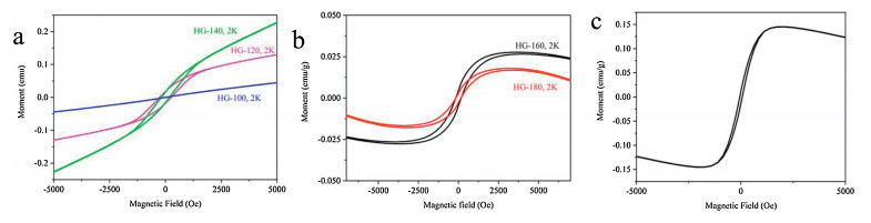 | Fig. 5. (a) MT curves of HG-100, HG-120 and HG-140 at 2 K. (b) MT curves of HG-160 and HG-180 at 2 K. (c) MT curve of HG-160 at 300 K. | |