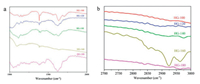 | Fig. 3. (a, b) FT-IR results of samples in high and low wavenumber, respectively. | |