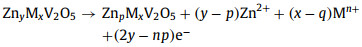 For the subsequent charge process, the Zn ions between V2O5 layers extract and move to the anodewith the electrolyte. The reaction is as follows: