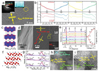 | Fig. 2. (a) The HRTEM image with SAED pattern of LixV2O5•nH2O at 0.1 A/g. (b) The discharge/charge curves in GITT measurement of LixV2O5–250 and the corresponding diffusivity coefficient (D) of Zn ion in the discharge and charge processes of the LixV2O5–250 and V2O5–250. Copied with permission [44]. Copyright 2018, the Royal Society of Chemistry. (c) The crystal structure, (d) SEM, HRTEM and (e) ex situ XRD patterns of Na0.33V2O5. Copied with permission [45]. Copyright 2018, Wiley-VCH. (f) The crystal structure, (g) XPS spectra, (h) HRTEM and (i) TEM images of Ag1.2V3O8. Copied with permission [54]. Copyright 2019, Elsevier. | |