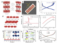 | Fig. 3. (a) The structure analysis, (b) HRTEM image and (c) galvanostatic discharge and charge profiles of Zn0.25V2O5•H2O. Copied with permission [60]. Copyright 2016, Springer Nature. (d) The crystal structure, (e) XRD pattern and (f) electricity conductivities of Ca0.25V2O5•xH2O. Copied with permission [61]. Copyright 2017, Wiley-VCH. (g) The XRD pattern, (h) XPS spectra and (i) charge/discharge curves of Mg0.26V2O5•0.73H2O. Copied with permission [65]. Copyright 2020, Wiley-VCH. | |