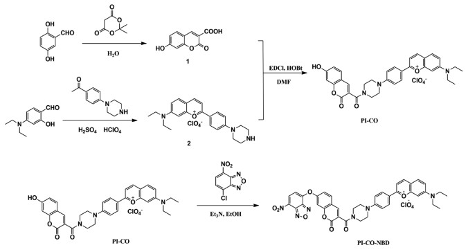 The probe PI-CO-NBD was obtained and characterized through a series of experiments which could be found in Supporting information. The synthesis route of PI-CO-NBD was shown in Scheme 1.