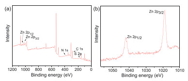 | Fig. 2. (a) XPS spectra of TPT-Zn@MS, (b) narrow spectra of Zn. | |