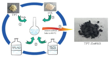 The prepared TPT-Zn@MS material was characterized by X-ray photoelectron spectrometry (XPS), scanning electron microscope (SEM), energy dispersive X-ray spectroscopy (EDS) and transmission electron microscopy (TEM).