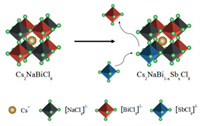 | Scheme 1. Schematic presentation of the crystal structures of the Cs2NaBiCl6 material and their Cs2NaBi1-xSbxCl6 mixed Bi/Sb cationic analogues. | |