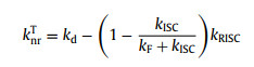 As shown in Fig. 3, Fluorescence and phosphorescence spectra of 2Cz-DMAC-BTB, 2Cz-DMAC-TXO and 2Cz-DMAC-TTR in neat films were measured at 77 K. From the peaks of the fluorescence and phosphorescence spectra, their S1 and T1 energy levels are estimated as 2.463 and 2.443 eV for 2Cz-DMAC-BTB, 2.311 and 2.275 eV for 2Cz-DMAC-TXO and 2.238 and 2.191 eV for 2Cz-DMAC-TTR, respectively. And their ΔESTs are estimated to be 0.020, 0.036, and 0.047 eV for 2Cz-DMAC-BTB, 2Cz-DMAC-TXO and 2Cz-DMAC-TTR. These extremely small ΔESTs will significantly enhance the RISC process and benefit the utilization of triplet excitons. By using an integrating sphere, the ΦPLs of 2Cz-DMAC-BTB, 2Cz-DMAC-TXO and 2Cz-DMAC-TTR in neat films were measured to be 68.0%, 32.2% and 12.6% under oxygen-free condition. Meanwhile, the transient PL decay curves of three compounds were then investigated. At the room temperature, 2Cz-DMAC-BTB, 2Cz-DMAC-TXO and 2Cz-DMAC-TTR neat films showed prompt decays with short lifetimes of 44.4, 47.9 and 22.1 ns in the range of 100 ns and delayed decays with lifetimes of 2.57, 1.93 and 0.76 µs in the range of 10 µs in nitrogen atmosphere. The temperature-dependence transient decay curves of three compounds are shown in Fig. S19. With the temperature increasing from 100 K to 300 K, the delayed lifetime of 2Cz-DMAC-BTB and 2Cz-DMAC-TXO are gradually declined, indicating their TADF characteristics. Relatively, the decay curves of 2Cz-DMAC-TTR are almost independent with the temperatures, which should be ascirbed to the quite weak intensities of its transient decays and unsatisfactory detection limitation of the instrument. To better understand the decay mechanisms of 2Cz-DMAC-BTB, 2Cz-DMAC-TXO and 2Cz-DMAC-TTR, we further analyzed their dynamic excitons variations by calculating their key kinetic parameters. To facilitate the calculations, the internal conversion process of singlet excitons was ignored here as it was evidently weaker compared with fluorescence decay and intersysrem crossing (ISC) process of singlet excitons normally. The key calculations were carried out via the following equations [2, 45]: