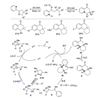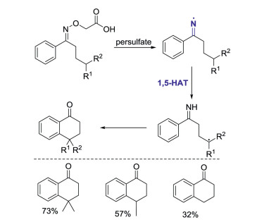 As early as 1979, the transformation of the phenylalkylideneamino−oxyacetic acids into tetralones under strong oxidative conditions had been realized by Forrester group (Scheme 1) [3], proving the feasibility of this type of domino process. It is important to note that performing the reaction under acidic conditions facilitated the 1, 5−HAT. But it did not receive enough attention for a long time afterwards, and its development was relatively slow.
