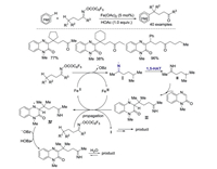 | Scheme 11. Iron-catalyzed radical relay reactions of alkyne-tethered oximes and alkenes. | |