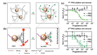 | Fig. 9. (a) Pictorial representation upon the diffusion of progesterone in QDs-hydrogel composites; (b) The transcription factors-DNA binding mechanism used in progesterone sensing; (c) Sensing response during the first and second cycle of the exposure and removal of progesterone (Green: exposure, Black: removal). Copied with permission [60]. Copyright 2020, American Chemical Society. | |