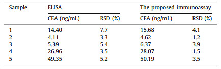 Table 1 Analytical results for the determination of CEA in real samples. |