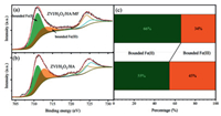 | Fig. 4. XPS spectra of the iron particles collected from the (a) ZVI/H2O2/HA/MF and (b) ZVI/H2O2/HA systems, and (c) the calculated area percentage of Fe(Ⅱ), Fe(Ⅲ) on the iron surfaces. | |