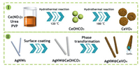 | Fig. 1. Conceptual scheme of synthesis route for (Ⅰ) CeVO4 hollow spheres and (Ⅱ) AgNW@CeVO4. | |
