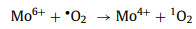 According to the above phenomena and analysis, the following mechanism can be inferred: Fe0 had strong reducibility that can reduce O2 to form H2O2 in acidic environment (Eq. 2) [24]. MoS2-Fe75 only contained a small section of Fe0 so that it was difficult to generate a large amount of H2O2, and the consumption of Fe0 cannot be avoided. Part of iron ions on the surface of MoS2-Fe75 was dissolved with the addition of H2O2 (Eq. 3). As shown in Fig. 3d, the peak of Fe0 completely disappeared, and the peaks of other iron ions in MoS2-Fe75 did not changed greatly. For some iron ions dissolved in the system, classic Fenton reaction was bound to happen in the system (Eq. 4), and Fe2+ could also reduce the O2 in the solution to ·O2– (Eq. 5). And the main ROS was still derived from H2O2 because the degradation rate did not have a great effect when the experiment was carried out in nitrogen atmosphere according to Fig. S9 (Supporting information). For the molybdenum ions of MoS2-Fe75, Mo4+ vastly facilitated the cycle of Fe2+ and Fe3+ (Eq. 6) during the reaction, preventing the formation of iron sludge and part of Mo4+ was oxidized to Mo6+ (Eq. 6) at the same time, which could be proved by the change of peaks in Mo 3d spectra. Mo6+ could be reduced to Mo4+ by H2O2, and O2 was produced meanwhile (Eq. 7). Moreover, Mo0 on the surface of MoS2-Fe75 effectively quenched ·OH in the system and then generated Mo4+ and OH– (Eq. 8 and Scheme 1), while part of the ·OH may further reacted with H2O2 to form ·O2H (Eq. 9) [25] and H2O. ·O2H was likely to be converted into ·O2– (Eq. 10) [26] with the departure of H+. Finally, Mo6+ was reacted with ·O2– to form 1O2 for further oxidation reactions (Eq. 11). Significantly, Mo° can effectively quench ·OH in the system after the reaction between H2O2 and Fe2+ [27], and Mo6+ on the surface fleetly oxidized the ·O2– to 1O2, which made it difficult to capture ·OH and ·O2– in the EPR tests. Relatively, 1O2 has a longer lifetime and it was easier to be captured in the MoS2-Fe75/H2O2 system.