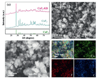 | Fig. 1. Phase, morphology and elemental distribution information of the CuF2-KB composite. (a) XRD patterns of the CuF2-KB and pristine CuF2. (b-d) SEM and corresponding EDS mapping images of the CuF2-KB composite. | |