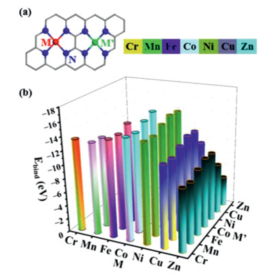 | Fig. 1. (a) The structures of adjacent dual metal active sites on MN4/M'N4-C and (b) the calculated Ebind values. | |