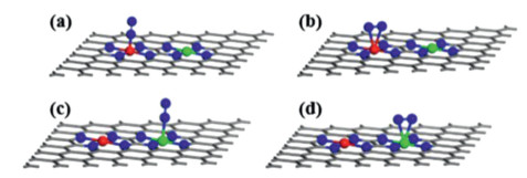 In conclusion, a series of energetically stable adjacent dual metal single atom supported on N-doped graphene (MN4/M'N4-C) are designed for electrochemical NRR by means of DFT calculations. Based on the results of N2 adsorption free energy, and Gibbs free energy change of NRR, it was predicted that 5 CrN4/M'N4-C (M' = Cr, Mn, Fe, Cu and Zn) exhibited promising NRR activity with the limiting potential of −0.64 V to −0.62 V. The modulation effect is observed in the adjacent dual metal single atom catalysts based on the analysis of charge distribution and PDOS. This work not only provides new insight for developing neighboring dual single atom catalysts at atomic level, but also highlights the importance of the modulation effect between the multi-active centers.