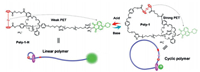 | Scheme 1. The chemical structure of the reversible topology transformation of the polyrotaxane between linear Poly-1-H and cyclic Poly-1 and their cartoon schematic representation. | |