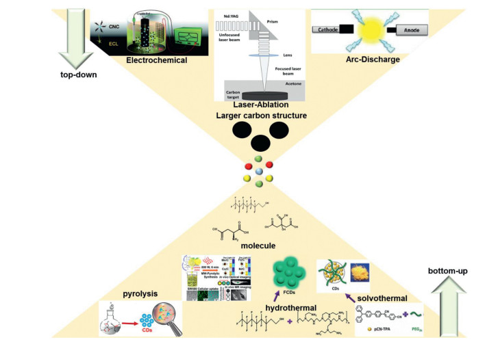 | Fig. 1. Top-down and bottom-up synthetic methods of CDs. | |