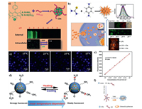Whether in chemical process or living system, temperature is also one of the important parameters. Accurately detecting the temperature of various environments has also become top priority. Compared with other nanomaterials, CDs have greater advantages for temperature sensing. Kalytchuk et al. constructed N, S, I-CDs from C3N3S3, potassium iodate (KIO3) and ethylenediamine (EDA), which were successfully employed for sensing the temperature in HT-29 cells (Fig. 14c) [17]. Yang et al. synthesized N-CDs from C3N4 and ethanediamine [16]. When temperature increased from 20 ℃ to 80 ℃, the fluorescence of N-CDs gradually decreased (Fig. 14d).