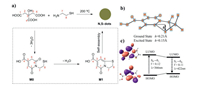 | Fig. 5. (a) Preparation of CDs and luminescent mechanism diagram. (b) The theoretically simulated optimal configuration of M1 and (c) the HOMO and LUMO energy level arrangement about its ground and excited states. Copied with permission [108]. Copyright 2016, American Chemical Society. | |