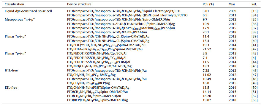 Table 1 Evolution of the architectures and the PCEs of PSCs. |