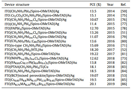 Table 2 PSCs using perovskites as the HTLs. |
