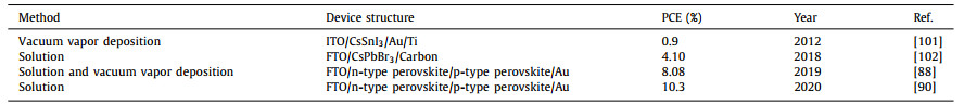 Table 4 The perovskite p-n homojunction solar cells. |