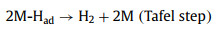 Akin to the reaction in acidic media, the HER occurred in alkaline media is composed by two crucial steps (Fig. 2b): the first one is generation and immobilization of Had (Eq. 4, Volmer step) and the second one is desorption process of H2 evolution. Unlike in acidic electrolyte, the proton donors in alkaline electrolyte are obtained from the dissociation of H2O molecules. The absorbed Had can be conducted via Heyrovsky step (Eq. 5, Heyrovsky step) or Tafel step (Eq. 6, Tafel step) and both to yield H2 [26].