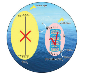 | Fig. 6. The proposed mechanism for the photocatalytic hydrogen production of the PI-OMe-TiO2. | |